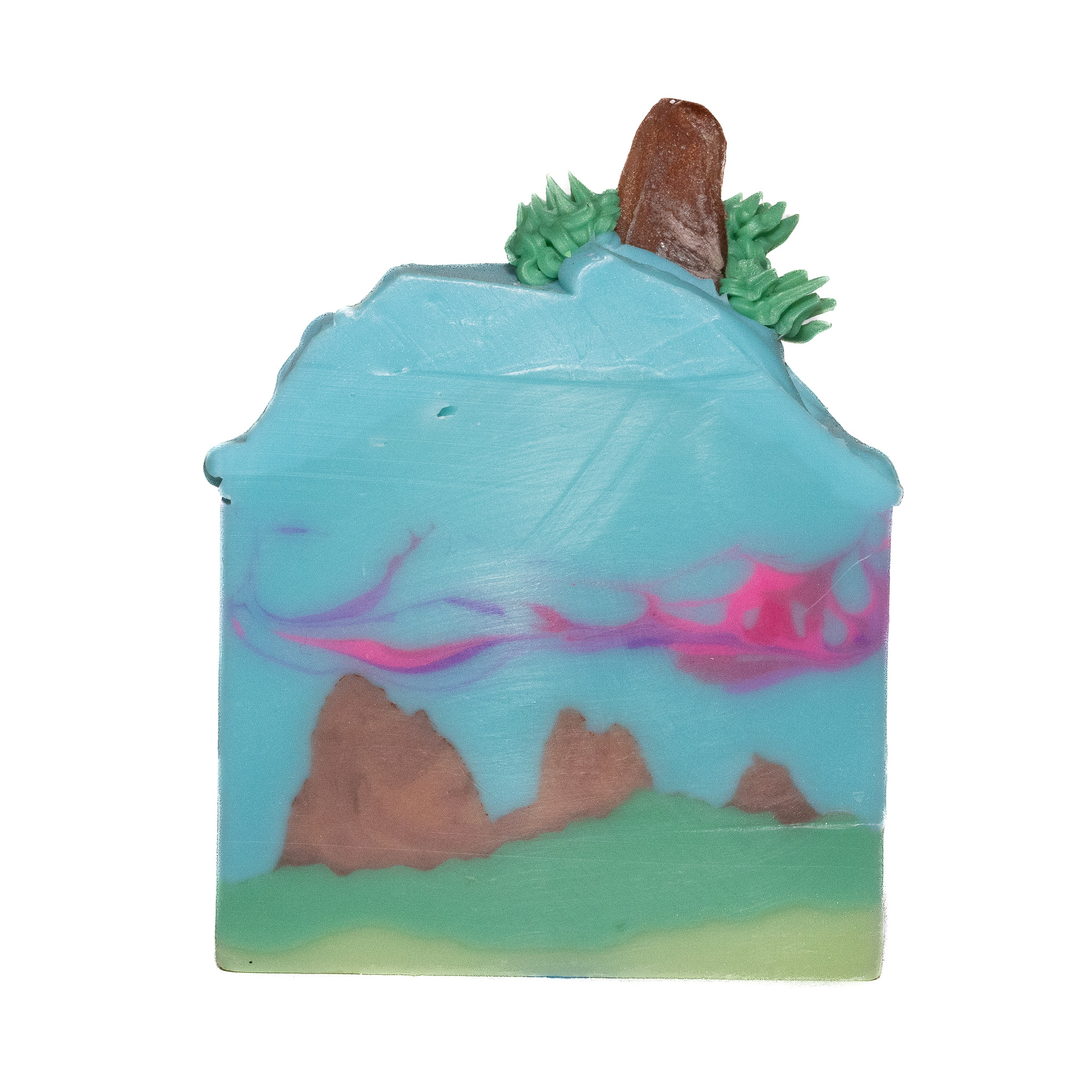 The West is home to many majestic sandstone formations. This soap captures some of that magic. Move it back and forth to see the sparkles of sunlight on the great stone monoliths.