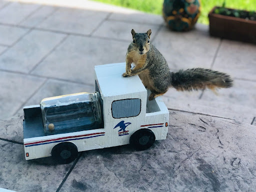 Oh and our story would not be complete without the mention of our mascot and my first friend upon moving to Denver! Meet our friendly neighborhood squirrel! Only problem is he is a felon, he keeps robbing the postal trucks, I mean the postal nuts!