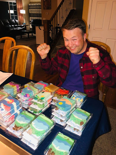 Both of our families and friends have checked in on us at shows and helped run the booth when we were busy. Andre’s mom has become our champion salesman and scouts new shops for us to be in everywhere we go. After our sugar scrubs helped Andre’s sister with her Keratosis pilaris, she has become our number one customer and buys all her soapy needs from us.
